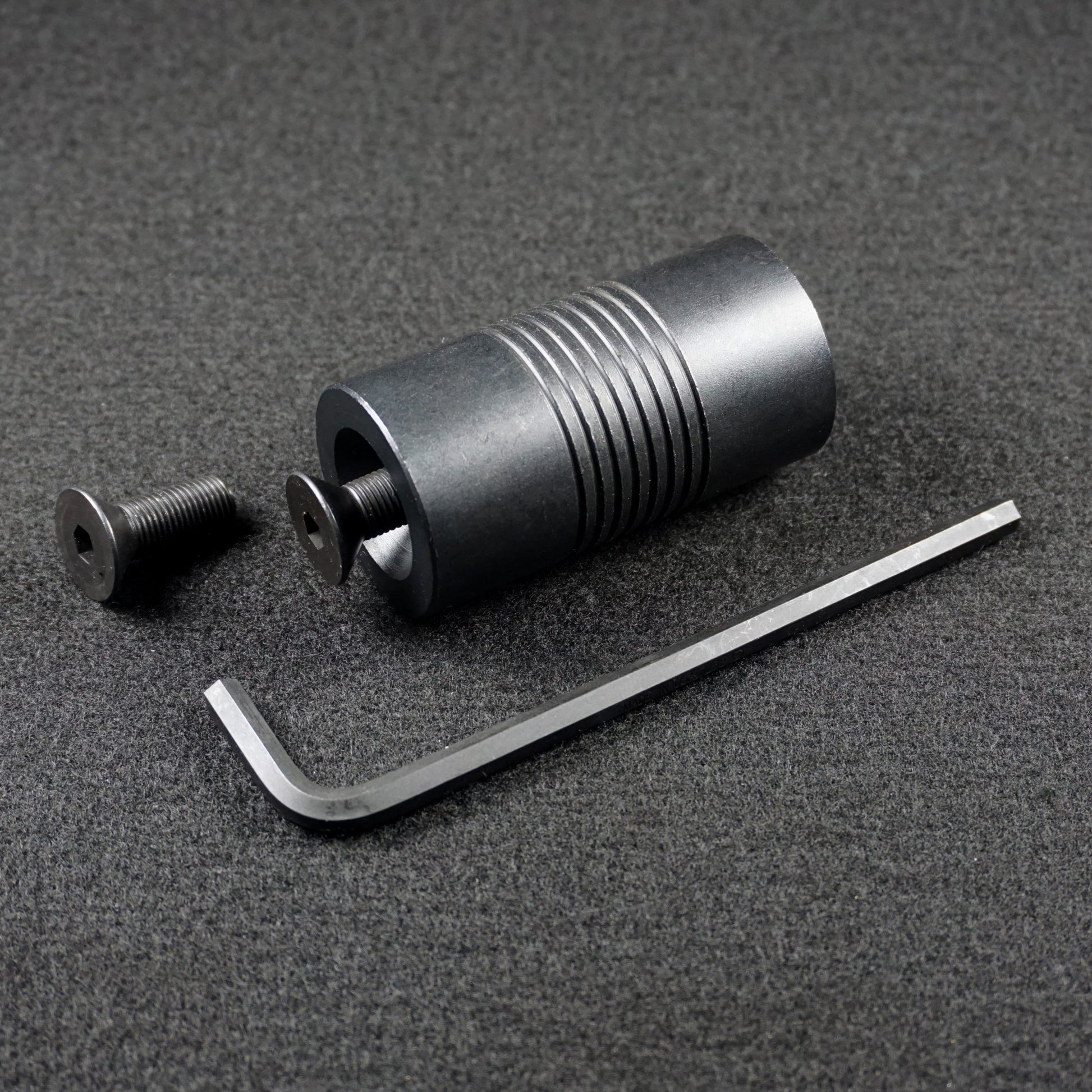 The tool is double-sided; after extensive use some wear may be evident in the threads or face of the tool; simply use the opposite side. Two allen screws and a long-arm allen wrench are also included.