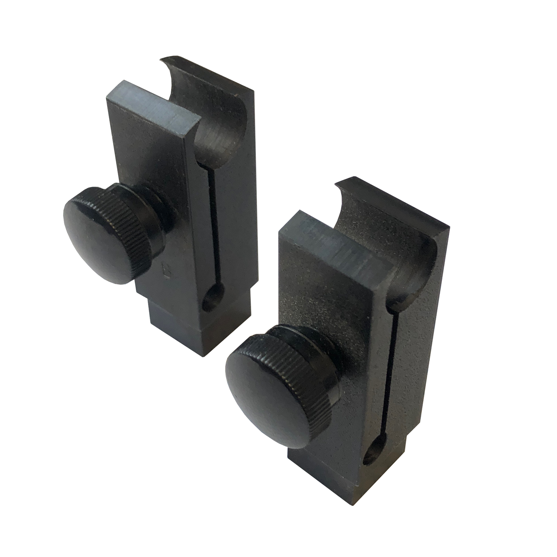 Plug vises that are adaptable for plugs from .480" diameter to .550". These vises can be hand held or secured in a bench vise. Only two vises are needed. Plugs, when loaded, will rotate in vises in the same manner as in the cylinder shell. Vise can be adjusted to any tension. The key blank will not drop below the radius of the plug so that the shear line can be maintained. High pins will show up when the plug is rotated. Made from solid steel for durability with the usual Framon precision.